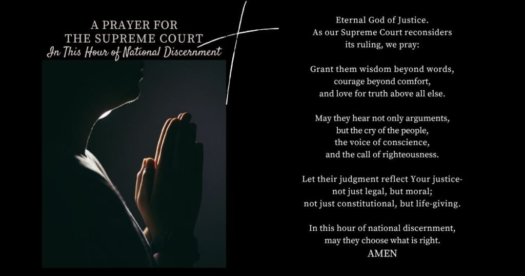 A Prayer for the Supreme Court in This Time of National Discernment Eternal and Just God,You are the source of all wisdom and truth,the foundation of justice, and the defender of the poor and oppressed.Today, we lift up in prayer our Supreme Court—its Justices, their consciences, and the immense responsibility they carry for our nation. […]